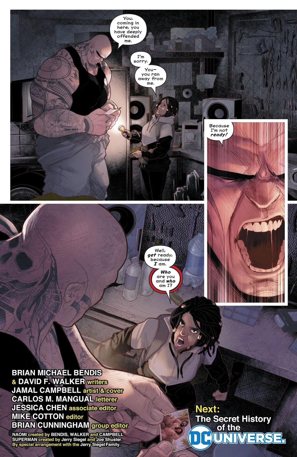 In between, we get Naomi’s adoptive parents acting as creepily as one would expect in a mystery about her origin. It’s all about the set up and execution, and I’m still in during all this slow burn. But it had better get good soon, or this’ll meet the same fate as Action Comics. (I finally cut it from my pull list this week.)