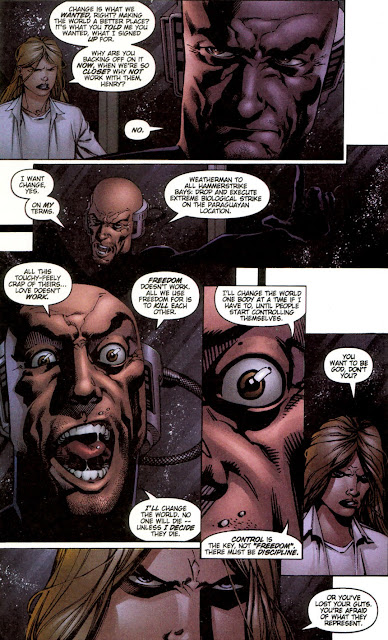 Alas, Warren Ellis’ Stormwatch hasn’t aged as well as I remember. Everything leading up to the “Change or Die” finale is surprisingly adequate compared to my memories of them, not nearly as fun. And the final arc, the showdown with The High and his team, is far less epic and disjointed. The number of confusing statements about Malcolm King alone makes me wonder if an editor reviewed the script at all.